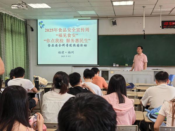 为深入贯彻“尚德守法 共享食安”2025年全国食品安全宣传周工作部署,推动“你点我检 服务惠民生”行动落地见效,9月23日,我院现代食品中心党支部书记孟鹏来到福建师范大学,以《我国食品安全监管体系沿革与新时代食品安全形势概述》为题为高校师生带来了一场“干货”满满的“舌尖上的安全课”。